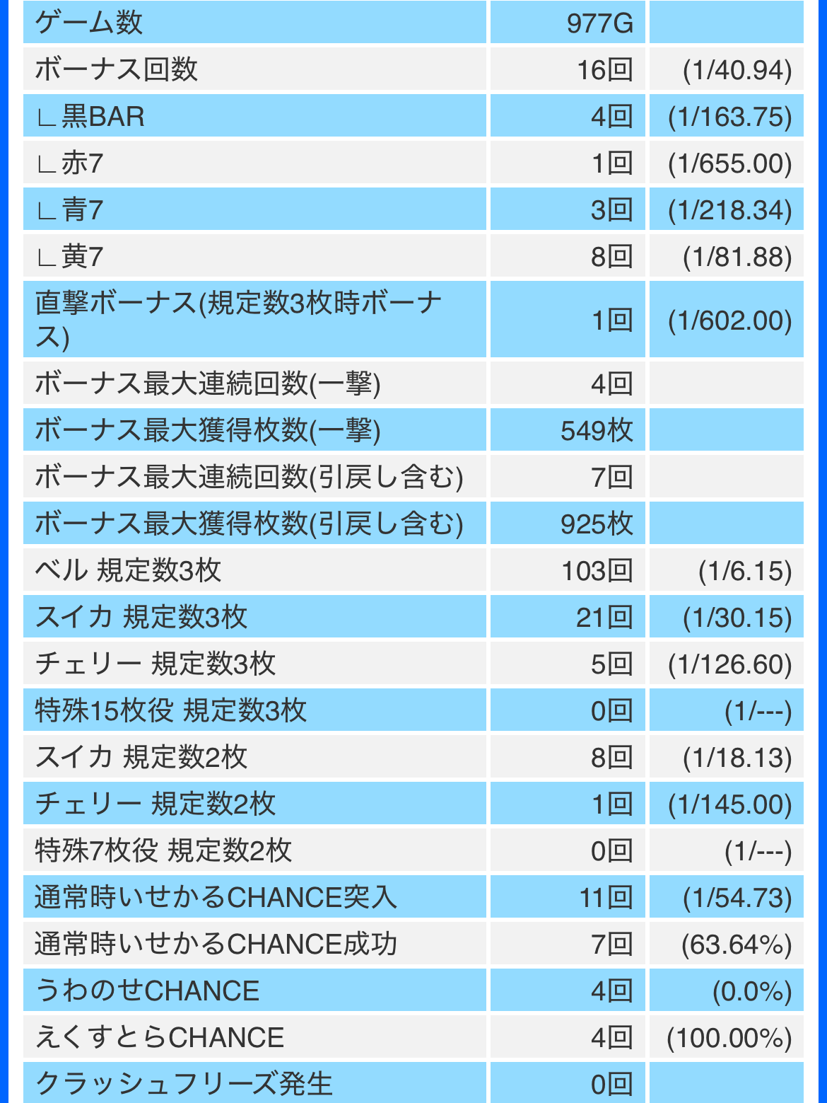 設定2以上が出てるから当然な部分もありつつ、ベルとスイカは明らかに設定1の数値とはかけ離れた数値。