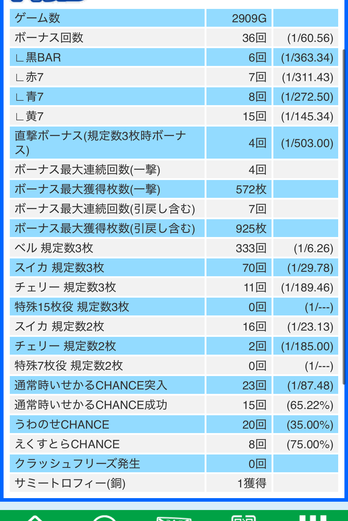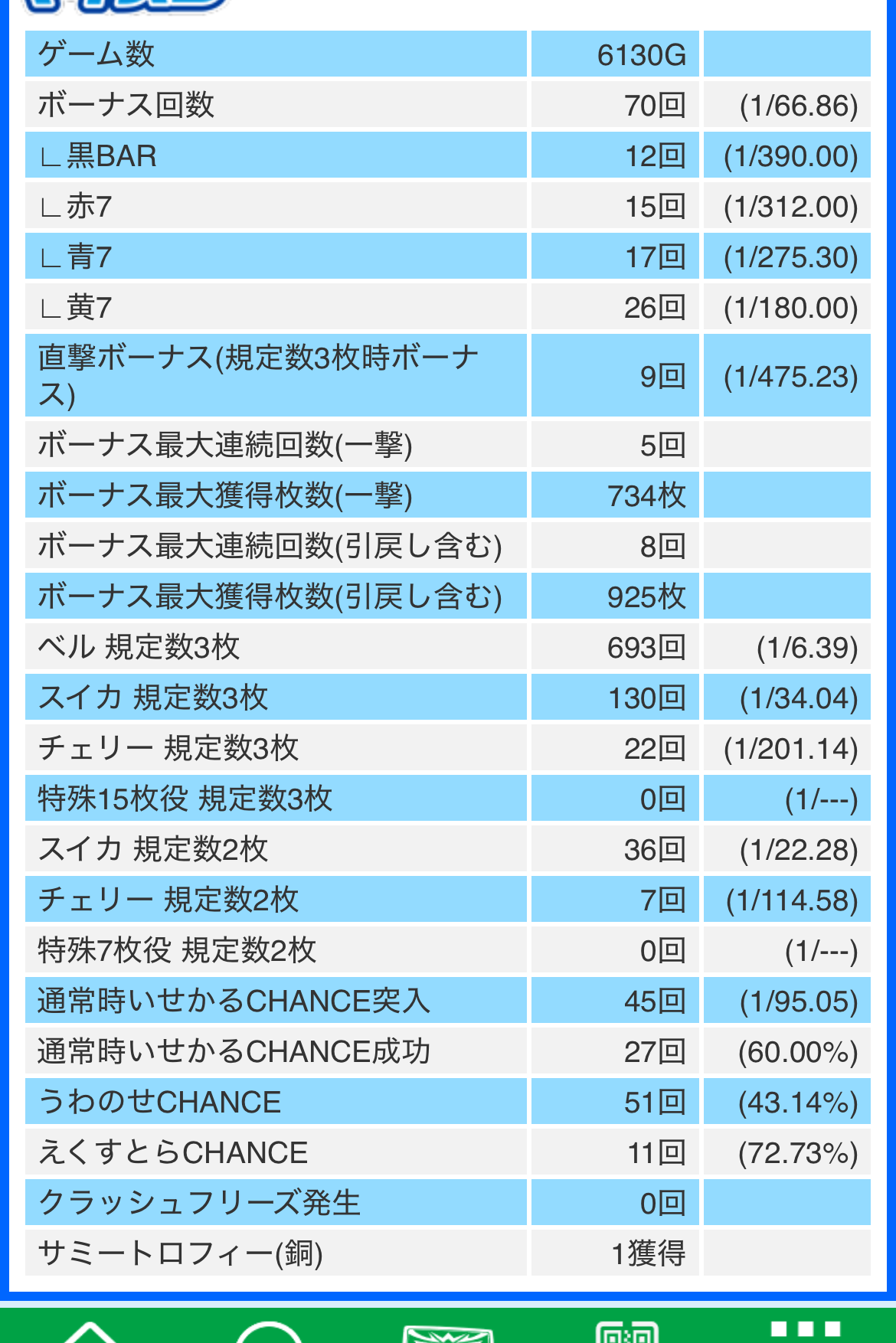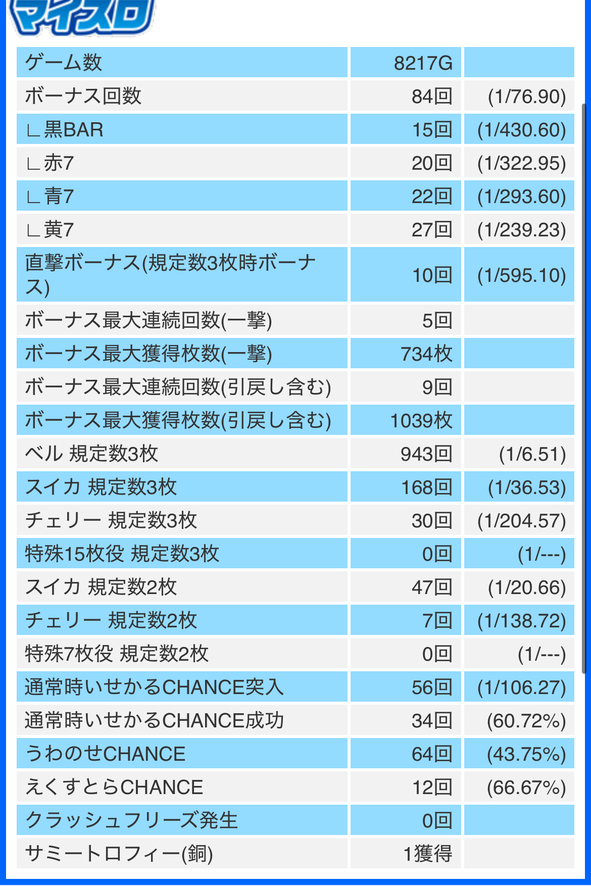 序盤は設定6を確信していた展開だったけど、終わってみれば設定5が一番近そう?ついで、2か6か?みたいな、なんとも難しい数値に。