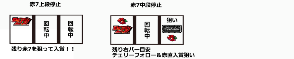 ⇒右は赤7目安にスイカ狙い。次ゲームボーナス入賞手順②で種有り判別。種無しなら通常に戻る。