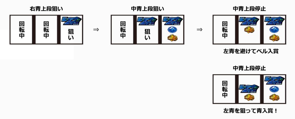 - 青ボナが確定した場合は下記ベル抜き&入賞手順実行